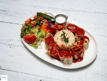 8 pieces of Turkish wings served with rice, salad and sauce.
