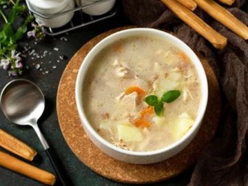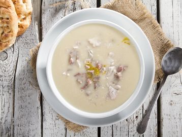 Chicken breast, chicken broth, butter, lemon, egg and rice served with homemade bread