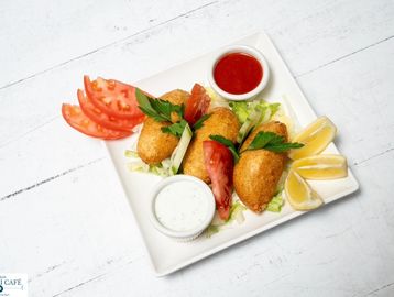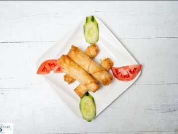 Fried phyllo dough stuffed with feta/mozzarella cheese, egg and parsley