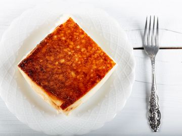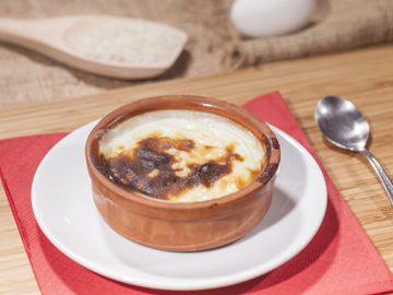 Homemade Milk-based dessert made with rice and milk. Golden topping and creamy texture