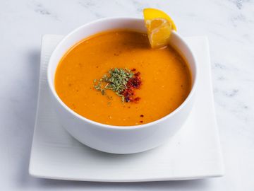 Vegetarian with red lentils and Turkish seasoning, served with homemade bread