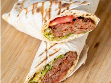 Çığ Köfte with lettuce, tomatoes, parsley, pickles served with white/hot sauce